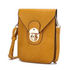 MATERIAL - Made of high-quality vegan leatherTurn lock closureFaux suede liningFEATURE - Designed with luxurious gold tone hardwareFlip snap top closureSmoothPOCKETS - Interior features two spacious compartments and mid centered pocket and roomy enough to fit an iPhone Plus comfortablyMEASUREMENTS - 7 in H x 5.2 in L x 1 in DAdjustable shoulder drops 13 in L