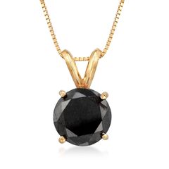 Established in 1952, Ross-Simons presents contemporary styles with a timeless appeal. Dare to be bold with this impressive 3.00 carat black diamond solitaire necklace! Set in a classic four-prong polished 14kt yellow gold setting. Suspends from a box chain and finishes with a springring clasp. Black diamond solitaire necklace. Necklace drop length - 1/2 inch long. Necklace drop width - 3/8 inch wide. Each Ross-Simons item arrives in a fine jewelry presentation box. Shop Ross-Simons jewelry risk-free as all items include a 30-day, 100% money-back guarantee.Stone InformationGem Type 1 - DiamondStone Cut 1 - Good-CutStone Color 1 - BlackStone Clarity 1 - BlackStone Shape 1 - Round-ShapeStone Creation Method 1 - NaturalStone Treatment Method 1 - Not-TreatedStone Weight 1 - 3.00 CaratsNumber Of Stones 1 - 1