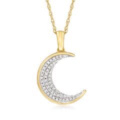 GENUINE 10KT GOLD — Diamond-accented moon pendant necklace in 10kt yellow gold. Round diamonds in white rhodium. Polished finish. 18 in. long. .85mm rope chain. Springring clasp. Canaria fine jewelry is the affordable luxury you've been looking for. Perfect for everyday wear, these genuine 10kt gold wardrobe essentials are fashionable, fun and designed to last a lifetime. Timeless with a twist, Canaria is a collection of classics with unique presence and personality at a great value.Stone InformationGem Type 1 - DiamondStone Cut 1 - Good-CutStone Color 1 - I-JStone Clarity 1 - I2Stone Shape 1 - Round-ShapeStone Creation Method 1 - NaturalStone Treatment Method 1 - Not-TreatedStone Weight 1 - 0.06 CaratsNumber Of Stones 1 - 43