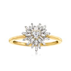 GENUINE 10KT GOLD — .25 ct. t.w. diamond heart burst ring in 10kt yellow gold. Round brilliant-cut and rectangular tapered baguette diamonds in white rhodium. Polished finish. 3/8 in. wide. Size 5. Canaria fine jewelry is the affordable luxury you've been looking for. Perfect for everyday wear, these genuine 10kt gold wardrobe essentials are fashionable, fun and designed to last a lifetime. Timeless with a twist, Canaria is a collection of classics with unique presence and personality at a great value.Stone InformationGem Type 1 - DiamondStone Cut 1 - Good-CutStone Color 1 - I-JStone Clarity 1 - I2Stone Shape 1 - Rectangular-ShapeStone Creation Method 1 - NaturalStone Treatment Method 1 - Not-TreatedStone Weight 1 - 0.22 CaratsNumber Of Stones 1 - 26Gem Type 2 - DiamondStone Cut 2 - Good-CutStone Color 2 - I-JStone Clarity 2 - I2Stone Shape 2 - Round-ShapeStone Creation Method 2 - NaturalStone Treatment Method 2 - Not-TreatedStone Weight 2 - 0.03 CaratsNumber Of Stones 2 - 3