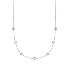 Ross-Simons is always looking for new ways to reinvent essential jewelry styles. With its twinkling bezel-set rounds, this pretty 3.50 ct. t.w. CZ station necklace will bring an elegant design element to your jewelry collection. Here, seven round brilliant-cut CZs parade a 14kt yellow gold cable chain. Springring clasp, CZ station necklace. CZ weights are diamond equivalents. Each Ross-Simons item arrives in a fine jewelry presentation box. Shop Ross-Simons jewelry risk-free as all items include a 30-day, 100% money-back guarantee.Stone InformationGem Type 1 - Cubic-ZirconiaStone Cut 1 - Good-CutStone Color 1 - ClearStone Clarity 1 - ClearStone Shape 1 - Round-ShapeStone Creation Method 1 - SyntheticStone Treatment Method 1 - Not-TreatedStone Weight 1 - 3.50-4.50 CaratsNumber Of Stones 1 - 7-9