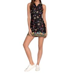 The kind of easy and flattering dress you'll be reaching for all season long.Button Front Placket. Fade Resistant. Moisture Wicking. Shrink Resistant. Measurements for Size Medium - Bust- 36", Length- 35". 71% Polyester 29% Spandex. Machine wash cold with like colors. Do no bleach. Tumble dry low. Cool iron if needed. Do not dry clean.