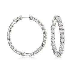 Ross-Simons is the authority on luxury classics. Stellar sparkle everywhere you turn! Our glamorous inside-outside hoop earrings are ablaze with 5.00 ct. t.w. round brilliant-cut lab-grown diamonds in polished 14kt white gold. Lab-grown diamonds are identical to mined diamonds according to their optical, physical and chemical properties. All Ross-Simons lab-grown diamond jewelry includes an IGI Laboratory-Grown Diamond Report to verify cut, color, clarity and weight. Hanging length is 1 1/8". Hinged post with vault lock safety, lab-grown diamond hoop earrings. Each Ross-Simons item arrives in a fine jewelry presentation box. Shop Ross-Simons jewelry risk-free as all items include a 30-day, 100% money-back guarantee.Stone InformationGem Type 1 - DiamondStone Cut 1 - Good-CutStone Color 1 - G-HStone Clarity 1 - VS2Stone Shape 1 - Round-ShapeStone Creation Method 1 - SyntheticStone Treatment Method 1 - Not-TreatedStone Weight 1 - 5.00 CaratsNumber Of Stones 1 - 40