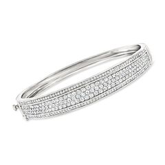 A trusted jeweler in 1952, Ross-Simons is dedicated to quality and value. Indulge in the radiance of this diamond bangle bracelet. It features 3.00 ct. t.w. pave diamonds in polished sterling silver. Hinged. Figure 8 safety. Box clasp, diamond bangle bracelet. Each Ross-Simons item arrives in a fine jewelry presentation box. Shop Ross-Simons jewelry risk-free as all items include a 30-day, 100% money-back guarantee.Stone InformationGem Type 1 - DiamondStone Cut 1 - Good-CutStone Color 1 - I-JStone Clarity 1 - I3Stone Shape 1 - Round-ShapeStone Creation Method 1 - NaturalStone Treatment Method 1 - Not-TreatedStone Weight 1 - 2.35 CaratsNumber Of Stones 1 - 121Gem Type 2 - DiamondStone Cut 2 - Good-CutStone Color 2 - I-JStone Clarity 2 - I3Stone Shape 2 - Round-ShapeStone Creation Method 2 - NaturalStone Treatment Method 2 - Not-TreatedStone Weight 2 - 0.65 CaratsNumber Of Stones 2 - 114