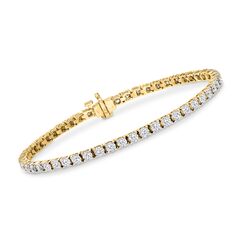 Ross-Simons travels the world to find beautiful, high-quality styles at the best prices. You can't go wrong with a classic tennis bracelet! Our stunning bracelet features 3.00 ct. t.w. round brilliant-cut diamonds in a polished 14kt yellow gold setting. The perfect go-to for your next formal function. Double-latch safety. Box clasp, diamond tennis bracelet. Each Ross-Simons item arrives in a fine jewelry presentation box. Shop Ross-Simons jewelry risk-free as all items include a 30-day, 100% money-back guarantee.Stone InformationGem Type 1 - DiamondStone Cut 1 - Good-CutStone Color 1 - H-IStone Clarity 1 - I2Stone Shape 1 - Round-ShapeStone Creation Method 1 - NaturalStone Treatment Method 1 - Not-TreatedStone Weight 1 - 3.00-3.40 CaratsNumber Of Stones 1 - 49-56