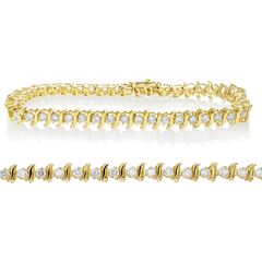 Ships within 1 dayPretty, elegant this 1.50 cttw certified diamond bracelet in 10k yellow gold illuminates her wrist like no other. The dazzling 50 natural round diamonds are F-G color and SI2-I1 clarity and set in a prong setting. The bracelet is secured by a box and tongue safety clasp. A certificate and a gift box are included with this 7 inch bracelet.Stone Type - Natural DiamondMetal - 10K Yellow GoldDiamond Carat Weight - 1.50 cttwNumber of Diamonds - 50Diamond Clarity - SI2-I1Diamond Color - F-GClasp Type - Box with Tongue and SafetySetting - Prong SettingDiamond Shape - RoundCertified - YesBracelet Length - 7 InchesBirthstone Month - AprilVir Jewels 10K Yellow Gold Bracelet For Female Adult