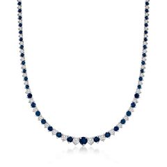 At Ross-Simons, we recognize the style power of versatile classics. Indulge in the luxury of sapphires and diamonds at an affordable price! This magnificent tennis necklace features 8.75 ct. t.w. round sapphires illuminated by 1.50 ct. t.w. round brilliant-cut diamonds in polished sterling silver. Graduates from 1/16" to 3/16" wide. Single-latch safety. Push-button clasp, diamond and sapphire tennis necklace. Each Ross-Simons item arrives in a fine jewelry presentation box. Shop Ross-Simons jewelry risk-free as all items include a 30-day, 100% money-back guarantee.Stone InformationGem Type 1 - SapphireStone Cut 1 - Good-CutStone Color 1 - BlueStone Clarity 1 - BlueStone Shape 1 - Round-ShapeStone Creation Method 1 - NaturalStone Treatment Method 1 - HeatedStone Weight 1 - 8.75 CaratsNumber Of Stones 1 - 93Gem Type 2 - DiamondStone Cut 2 - Good-CutStone Color 2 - I-JStone Clarity 2 - I3Stone Shape 2 - Round-ShapeStone Creation Method 2 - NaturalStone Treatment Method 2 - Not-TreatedStone Weight 2 - 1.50 CaratsNumber Of Stones 2 - 93