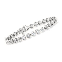 A trusted jeweler in 1952, Ross-Simons is dedicated to quality and value. Make your sparkling dreams come true, without breaking the bank! This gorgeous tennis bracelet showcases 3.00-3.45 ct. t.w. round brilliant-cut bezel-set diamonds in polished sterling silver. Figure 8 safety. Push-button clasp, bezel-set diamond tennis bracelet. Each Ross-Simons item arrives in a fine jewelry presentation box. Shop Ross-Simons jewelry risk-free as all items include a 30-day, 100% money-back guarantee.Stone InformationGem Type 1 - DiamondStone Cut 1 - Good-CutStone Color 1 - I-JStone Clarity 1 - I3Stone Shape 1 - Round-ShapeStone Creation Method 1 - NaturalStone Treatment Method 1 - Not-TreatedStone Weight 1 - 3.00-3.45 CaratsNumber Of Stones 1 - 34-39