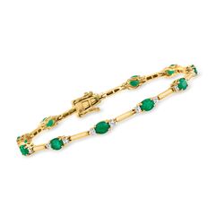 A top-rated jeweler since 1952, Ross-Simons travels the world to find high-quality styles at the best prices. A traditional look of luxury, 4.80 ct. t.w. oval emeralds glow in stations, alongside .86 ct. t.w. round brilliant-cut diamonds in white rhodium, all set in polished 14kt yellow gold. These gorgeous, verdant emeralds are a vivid reminder of why they are among the world's most beloved gemstones. Double-latch safety. Box clasp, diamond and emerald bracelet. Each Ross-Simons item arrives in a fine jewelry presentation box. Shop Ross-Simons jewelry risk-free as all items include a 30-day, 100% money-back guarantee.Stone InformationGem Type 1 - EmeraldStone Cut 1 - Good-CutStone Color 1 - GreenStone Clarity 1 - GreenStone Shape 1 - Oval-ShapeStone Creation Method 1 - NaturalStone Treatment Method 1 - OiledStone Weight 1 - 4.80 CaratsNumber Of Stones 1 - 26Gem Type 2 - DiamondStone Cut 2 - Good-CutStone Color 2 - G-HStone Clarity 2 - SI1Stone Shape 2 - Round-ShapeStone Creation Method 2 - NaturalStone Treatment Method 2 - Not-TreatedStone Weight 2 - 0.86 CaratsNumber Of Stones 2 - 26