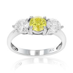 Ships within 1 dayStunning, elegant 1.60 cttw 3 Stone Yellow and White Diamond Engagement Ring 14K White Gold. The sparkling natural irradiated yellow diamonds are 1.60 cttw. Gift box is included with purchase of this ring.Stone Type - Yellow Diamond ; White DiamondMetal - 14K White GoldDiamond Carat Weight - 1.60 CTDiamond Cut - RoundDiamond Color - YellowDiamond Clarity - I1-I2Diamonds - 35Vir Jewels 14K White Gold Engagement Ring For Female AdultBirthstone Month - April