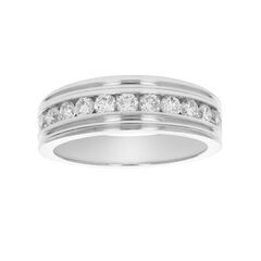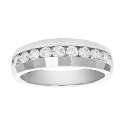 Ships within 1 dayLovely, elegant certified men's 1 cttw SI2-I1 14K white gold machine set 9 stone diamond wedding band. The diamonds are natural (no color or clarity enhancement), SI2-I1 Clarity and I-J Color. The ring has 9 diamonds and weighs 8.6 grams and width is 6.8 mm. The ring is AGS Certified. AGS Certificate is included with this purchase.Stone Type - Natural DiamondMetal - 14K White GoldDiamond Carat Weight - 1 cttwDiamond Cut - RoundDiamond Color - I-JNumber of Diamonds - 9Diamond Clarity - SI2-I1Vir Jewels 14K White Gold Diamond Wedding Band For Male AdultBirthstone Month - April