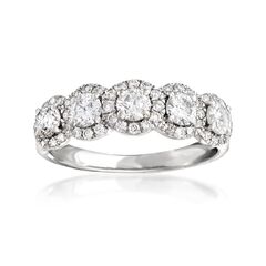 At Ross-Simons, we recognize the style power of versatile classics. Perfect as an anniversary band or gift for a very special occasion, this ring says "I love you" with 1.00 ct. t.w. of diamonds. Here, five round brilliant-cut diamonds are each haloed in diamond rounds. 14kt white gold band and setting. Halo diamond ring. Each Ross-Simons item arrives in a fine jewelry presentation box. Shop Ross-Simons jewelry risk-free as all items include a 30-day, 100% money-back guarantee.Stone InformationGem Type 1 - DiamondStone Cut 1 - Good-CutStone Color 1 - I-JStone Clarity 1 - I1Stone Shape 1 - Round-ShapeStone Creation Method 1 - NaturalStone Treatment Method 1 - Not-TreatedStone Weight 1 - 0.71 CaratsNumber Of Stones 1 - 5Gem Type 2 - DiamondStone Cut 2 - Good-CutStone Color 2 - I-JStone Clarity 2 - I1Stone Shape 2 - Round-ShapeStone Creation Method 2 - NaturalStone Treatment Method 2 - Not-TreatedStone Weight 2 - 0.20 CaratsNumber Of Stones 2 - 30Gem Type 3 - DiamondStone Cut 3 - Good-CutStone Color 3 - I-JStone Clarity 3 - I1Stone Shape 3 - Round-ShapeStone Creation Method 3 - NaturalStone Treatment Method 3 - Not-TreatedStone Weight 3 - 0.09 CaratsNumber Of Stones 3 - 18