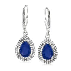 A top-rated jeweler since 1952, Ross-Simons travels the world to find high-quality styles at the best prices. These gorgeous drop earrings bring together two beloved gems for the ultimate dose of sparkle. On them, 4.70 ct. t.w. pear-shaped sapphires are double-framed by .41 ct. t.w. round brilliant-cut diamonds. Set in polished 14kt white gold. Hanging length is 1 1/4". Leverback, diamond and sapphire drop earrings. Each Ross-Simons item arrives in a fine jewelry presentation box. Shop Ross-Simons jewelry risk-free as all items include a 30-day, 100% money-back guarantee.Stone InformationGem Type 1 - SapphireStone Cut 1 - Good-CutStone Color 1 - BlueStone Clarity 1 - BlueStone Shape 1 - Pear-ShapeStone Creation Method 1 - NaturalStone Treatment Method 1 - HeatedStone Weight 1 - 4.70 CaratsNumber Of Stones 1 - 2Gem Type 2 - DiamondStone Cut 2 - Good-CutStone Color 2 - I-JStone Clarity 2 - I2Stone Shape 2 - Round-ShapeStone Creation Method 2 - NaturalStone Treatment Method 2 - Not-TreatedStone Weight 2 - 0.41 CaratsNumber Of Stones 2 - 122
