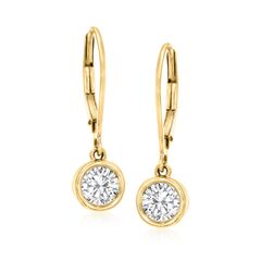 Established in 1952, Ross-Simons presents contemporary styles with a timeless appeal. Perfectly elegant. Bezel-set diamonds, 1.00 ct. t.w., beam within settings of 14kt yellow gold. Hanging length is 7/8". Leverback, diamond drop earrings. Each Ross-Simons item arrives in a fine jewelry presentation box. Shop Ross-Simons jewelry risk-free as all items include a 30-day, 100% money-back guarantee.Stone InformationGem Type 1 - DiamondStone Cut 1 - Good-CutStone Color 1 - I-JStone Clarity 1 - I2Stone Shape 1 - Round-ShapeStone Creation Method 1 - NaturalStone Treatment Method 1 - Not-TreatedStone Weight 1 - 1.00Number Of Stones 1 - 2