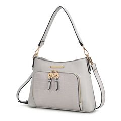 Our Anayra Handbag/Shoulder Bag effortlessly combines style with versatility. The Anayra Handbag/Shoulder Bag unzips to reveal a fully lined interior with slip pockets and a wall zippered pocket. Wear it on your shoulder/ Handbag or adjust the detachable strap to style it crossbody. The Anayra Handbag has a front pocket crafted from luxe crocodile-embossed vegan leather and a back zippered pocket. The bag is designed with gold-tone embellishments, has a structured silhouette and a flat base with feet for stability.POCKETS - Interior features a wall zip pocket and two slip pockets. Exterior features one zippered back pocket and one zippered front pocketMeasurements - 11” W x 7.5” H x 2.5” DHandle Drop - 8”Adjustable and Removable strap - 15”-28”