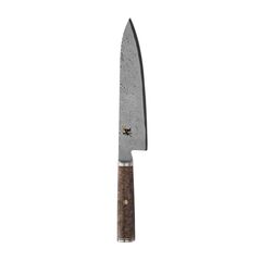 The Miyabi Black 5000MCD is a true work of art. The blade is constructed of micro-carbide powdered MC66 steel, which is ice-hardened to an impressive 66 HRC. This results in an exceptionally sharp and lasting edge. The blade is wrapped in 132 additional layers of steel, resulting in a beautiful flower damascus pattern.The handle of the Miyabi Black series is made from unique wood, black ash. The grain and color of the black ash contrasts with the damascus of the blade. The handle is crafted in a traditional "D" shape, providing optimal ergonomics for fatigue-free cutting in the kitchen.Handcrafted in Seki, Japan. Blade consists of 133 layers of steel, resulting in a floral damascus pattern MC66 MicroCarbide steel is hardened to 66 HRC D-shaped handle made from stunning black ash Sharpened using a traditional, three step Honbazuke method Hand crafted in Seki, Japan