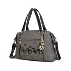 Looking for flowers that never fade? With a 3-D color block floral design with studs make this Francis Tote Bag a lovely way to carry your belongings. Made of a high quality grainy vegan leather, this Bag features detachable and adjustable shoulder strap for everyday versatility. Designed with gold-tone embellishments, the Francis Tote Bag unzips to reveal a fully lined interior with slip pockets and a wall zippered pocket. It has a convenient exterior zipper pocket and is accented with a signature charm. It has a soft silhouette and a flat base for stability. POCKETS - Interior features a wall zip pocket, two slip pockets. Exterior features one zippered back pocket and one front zip pocket. Measurements - 14.5” W x 11.2” H x 4.7” D Handle Drop - 6.7” Adjustable and Removable strap - 12”-25” Pouch - 10” W x 7”H Wallet with wristlet - 7.5” w x 4” H x 1” D 1 center zip pocket, 8 card slots, 2 slip pocket, zip fastening