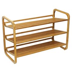Get organized with Oceanstar’s 3 tier bamboo shoe rack today! This 3 tier shoe rack holds shoes on each level and keeps your shoes neat and tidy. This is a perfect accessory for the entryway and for keeping shoes off the floor. This shoe rack has a modern look that will never look outdated. Unlike traditional enclosed shoe cabinets, the open slats on each tier here allow air circulation between your shoes. It features rounded corners, slatted shelves, and an adjustable design that allows shoes to rest on a flat or angled surface. The two arches on each side make transportation easy around the house. The 3 tier shoe rack holds approximately 9 to 12 pairs of adult-size shoes. This shoe rack is easy to clean by using a damp cloth