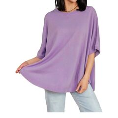 Look no further, you just found your perfect tee!Lightweight Sweater Knit. Boat Neckline. Dolman Sleeve. Ribbed Neckline, Sleeve. Cuff, Hemline. Poncho Style. Scooped Hem. Oversized Fit. True Size. 100% Acrylic.