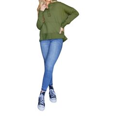 Cozy fabric, impeccable design - Meet the sweatshirt that you'll never want to take off.Loose fit pullover knit top. Hoodie for added warmth. Kangaroo front pocket for convenience. Hazy green color, versatile for any occasion. True to size fit. 100% Polyester.