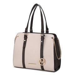Our Amy Tote bag is equal parts stylish and sensible. Featuring bold chain gold hardware and crafted from Saffiano vegan leather and smooth color block trim, this is a seasonless style that you will carry time and again. Unzips it to reveal a fully lined interior with two slip pockets and a wall zippered pocket. The spacious design is completed with a padded center zip compartment. This large carryall is spacious enough to hold all your essentials for a busy day, making it the perfect everyday piece. The Amy Tote Bag has a flat base with feet for stability. It comes with our round Mia K emblem attached to a string. POCKETS - Interior features a wall zip pocket, two slip pockets and one center zip compartment. Measurements - 13.5” W x 10.75” H x 4.5” D Handle Drop - 10”