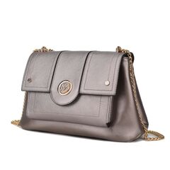 Our Eden Shoulder bag is crafted from saffiano and a matching smooth high-quality vegan leather. Designed in a softly structured silhouette, with gold-tone embellishments, you will love this style. This shoulder bag is spacious enough to hold all your daily essentials. Flap closure with magnetic snaps. Open the flap to reveal a fully lined interior with slip pockets and a wall zippered pocket. The interior is completed with a center zip compartment. The exterior features a front slip pocket and back zippered pocket to keep all your belongings on hand. Our Eden Shoulder bag comes with an adjustable metal chain so you can style it to wear crossbody. The Eden shoulder bag has a flat base and feet for stability. POCKETS - Interior features a wall zip pocket, two slip pockets and a center zip compartment. Exterior features a front slip pocket and back zippered pocket. Measurements - 12.6” W x 7.8” H x 5” D Adjustable strap - 12.5”- 22”