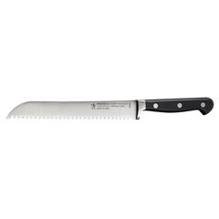 ZWILLING Pro is the most user-friendly knife available to market. The unique blade shape and ergonomic bolster are the result of years of experience in knife making, and the rigorous study of how knives are used. A unique curved bolster supports the professional pinch grip, with thumb and index finger on the blade, for safe cutting and less fatigue. The blade was redesigned with a broader curve in the front to facilitate the rocking motion of Western cutting, while the straight back is ideal for the Asian chopping motion. The full length of the blade can be used when cutting and can be sharpened from bolster to tip Designed in Italy by Matteo Thun and made in Germany by ZWILLING J.A. Henckels, the company that sets the standard for exceptional cutlery worldwide. The ZWILLING Pro 8" bread knife has aggressive serrations, making short work of hard, crusty breads. Curved bolster encourages cutting with improved precision, safety and comfort POM handle is durable and resiliant SIGMAFORGE knife is forged from a single piece of Special Formula High-Carbon NO STAIN stainless steel Ice-hardened FRIODUR blade starts sharper, stays sharper longer, and has superior resilience Precision-honed blade and laser-controlled edge ensures ideal cutting angle for sharpness and durability Full tang and handle are triple-riveted for superb stability Dishwasher safe, hand wash recommended Manufactured in Germany