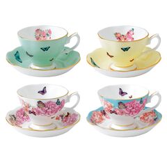Delicate, delightful and totally Miranda, the Miranda Kerr for Royal Albert collection is for the sophisticated and feminine woman. This set of four teacups & saucers includes a set from the patterns devotion, gratitude, blessings and joy. Making this colorful set the perfect addition to any tea occasion and teaware collection. Dimensions - Teacup - 3.7 x 3.7 x 2.7", Capacity 6oz, Saucer - 5.5 x 5.5 x 0.8"