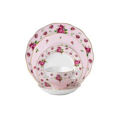 Vibrant and vivacious, New Country Roses Pink is a beautiful new addition to the vintage patterns that have made Royal Albert famous the world over. Youthful and exuberant, this Vintage 5-Piece Place Setting is charmingly fashioned in fine bone china, and combines classic form with intricate detailing, vibrant colors and a lustrous gold rim. Dimensions - Dinner - 10.6 x 10.6 x 0.8", Salad - 8.3 x 8.3 x 0.5", Bread & Butter - 6.5 x 6.5 x 0.6", Teacup - 4.5 x 3.7 x 2.7", Capacity 6.5oz, Saucer - 5.5 x 5.5 x 1"