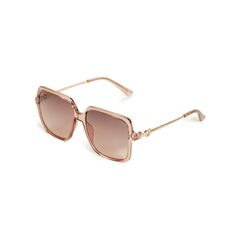 Finish your look with these chic sunglasses featuring oversized square plastic frames and metal temples with a rhinestone-adorned logo detail.