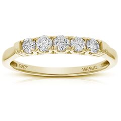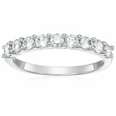 Ships within 1 dayElegant 3/4 cttw diamond wedding band 14k white or yellow gold with 9 sparkling natural diamonds set in a prong setting. The diamonds are I-J color. The ring weighs 1.5 grams. Each ring is tagged by a unique number that matches the certificate. Certificate and a gift box are included with this ring.This style can be made in additional ring sizes and metal. Please contact us.Stone Type - Natural DiamondMetal - 14K White or Yellow GoldDiamond Carat Weight - 3/4 cttw (0.75 cttw)Diamond Cut - RoundDiamond Color - I-JDiamond Clarity - I1-I2Diamonds - 9AGS CertifiedVir Jewels 14K White or Yellow Gold Wedding Band For Female AdultBirthstone Month - April