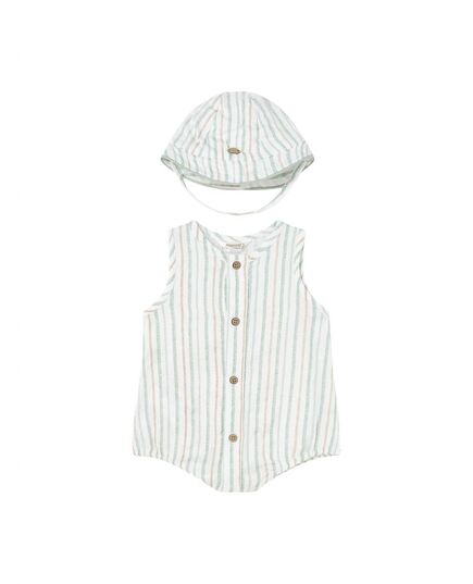 Baby Stripe Romper And Hat In Aqua