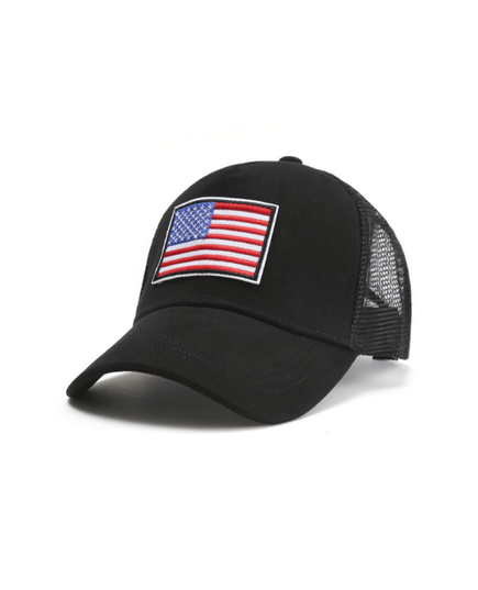 American Flag Trucker Hat with Adjustable Strap | Breathable & Unisex Look stylish while showing your patriotism with this American flag trucker hat. It's made from a high-quality cotton and polyester mix with a mesh back that maximizes breathability while maintaining its form. This unisex hat features a 3D embossed flag patch and is adjustable so it can accommodate both women and men. This USA baseball cap is great when used as a sun hat for outdoor activities like hiking and exercising, or as a fashionable lifestyle hat. Features - Stylish & Breathable - The plush material and exquisite flag embroidery provide a stylish look while remaining breathable and comfortable to wear. This hat features a curved brim with an adjustable snap closure on the back making it a fashionable lifestyle hat for attending gatherings with friends or for traveling. Great for Outdoor Activities - Provides protection from the sun and is great for outdoor activities like hiking, biking, running, and exercising. The built-in nylon mesh provides ample ventilation and wicks sweat away to keep you cool and dry. Well Constructed - The inside front is lined with sweat-resistant bands to absorb sweat from the head while the mesh back provides ample breathability. Durable Material - Constructed from a high-quality cotton and polyester mix with a nylon mesh back to provide a long-lasting and durable hat that will withstand many uses while maintaining its form. Adjustable Size - The snap closure on the back allows for adjusting the size of the cap to accommodate various sizes. The comfortable design is versatile and offers a great fit. Unisex Design - This unisex hat is adjustable so it can accommodate both women and men. Easy to Wash - Made of high-quality materials that are meant to last even through multiple washes.