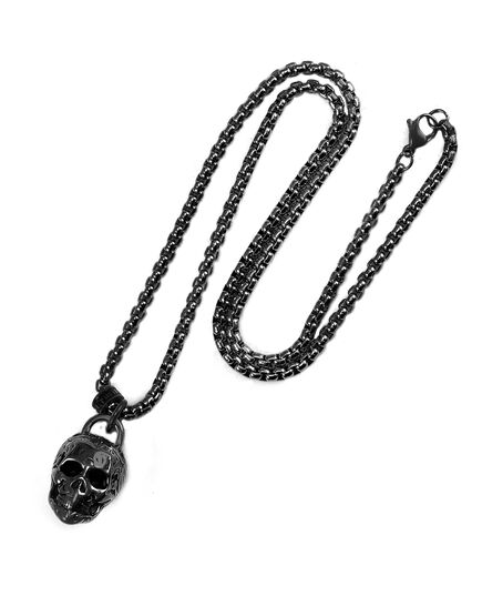 Crucible Los Angeles Black Stainless Steel 25mm Skull Necklace on 24 Inch 4mm Box Chain
