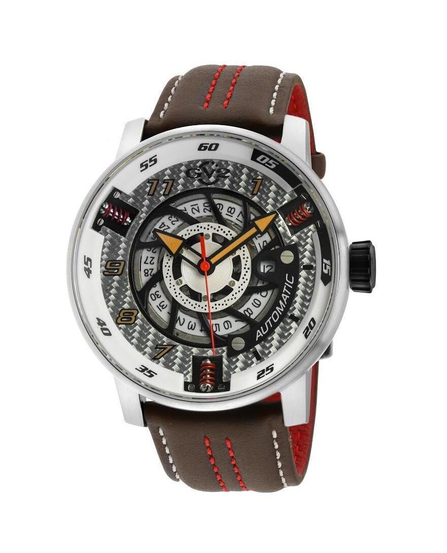 GV2 Motorcycle Mens Silver Dial Black Calfskin Leather Watch