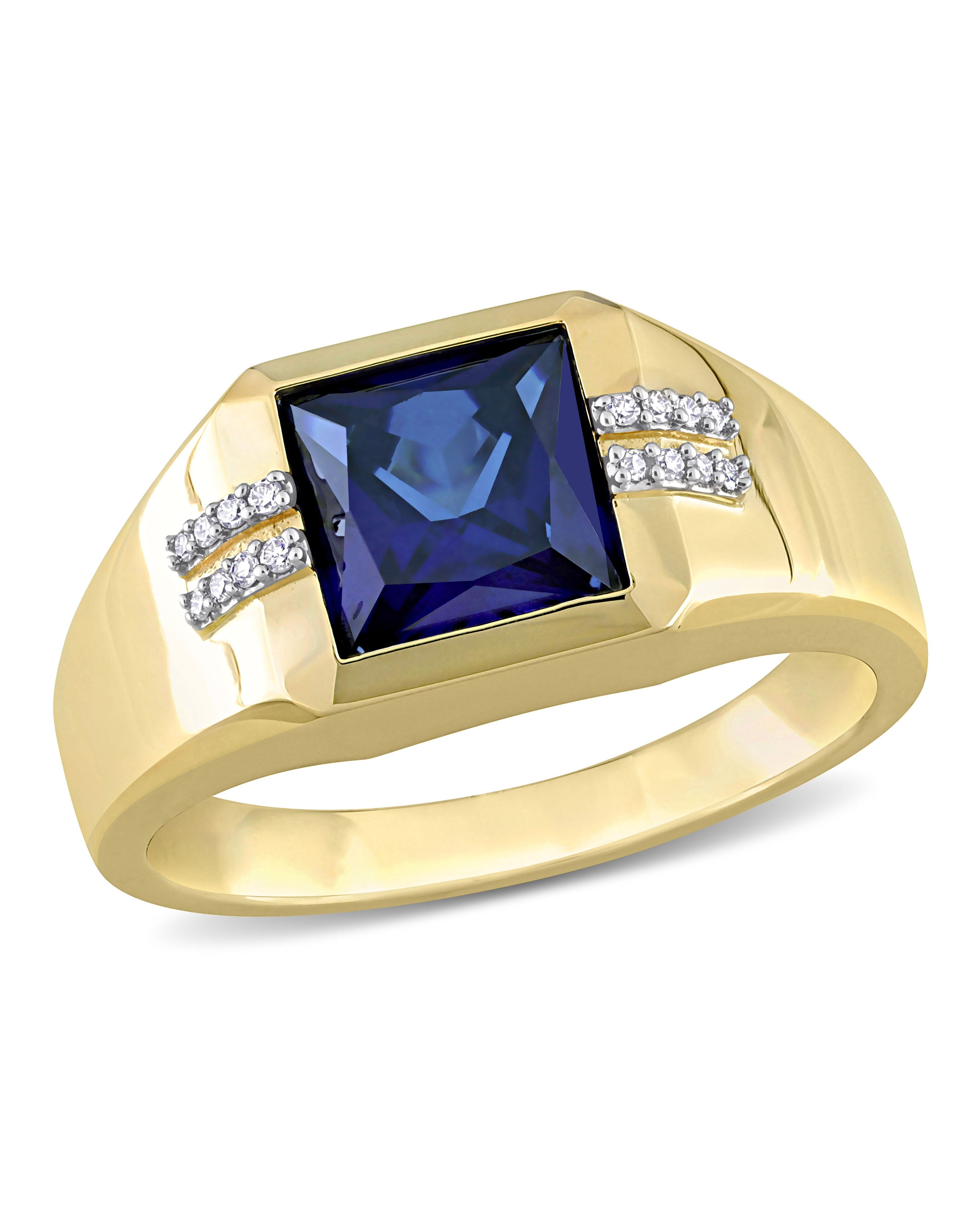 Mimi & Max 3ct TGW Square Created Blue Sapphire and Diamond Accent Men's Ring in 10k Yellow Gold