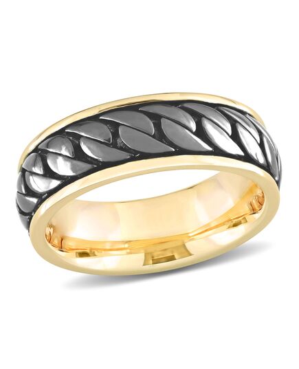 Mimi & Max Ribbed Design Men's Ring in Yellow Plated Sterling Silver with Black Rhodium Plating