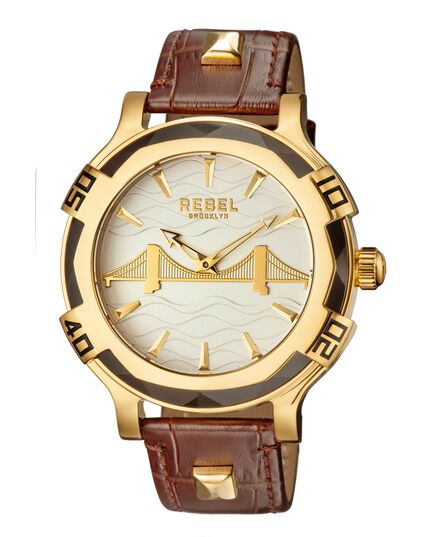 Rebel Men's Brooklyn Bridge Silver Dial Leather Watch