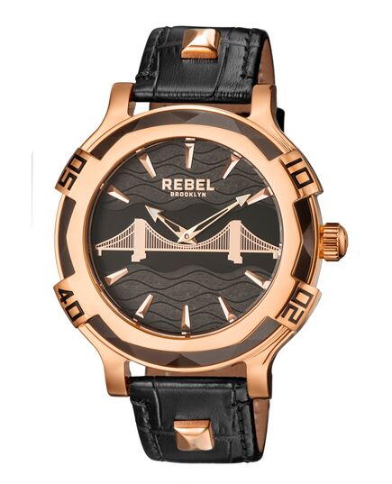 Rebel Men's Brooklyn Bridge Black Dial Leather Watch