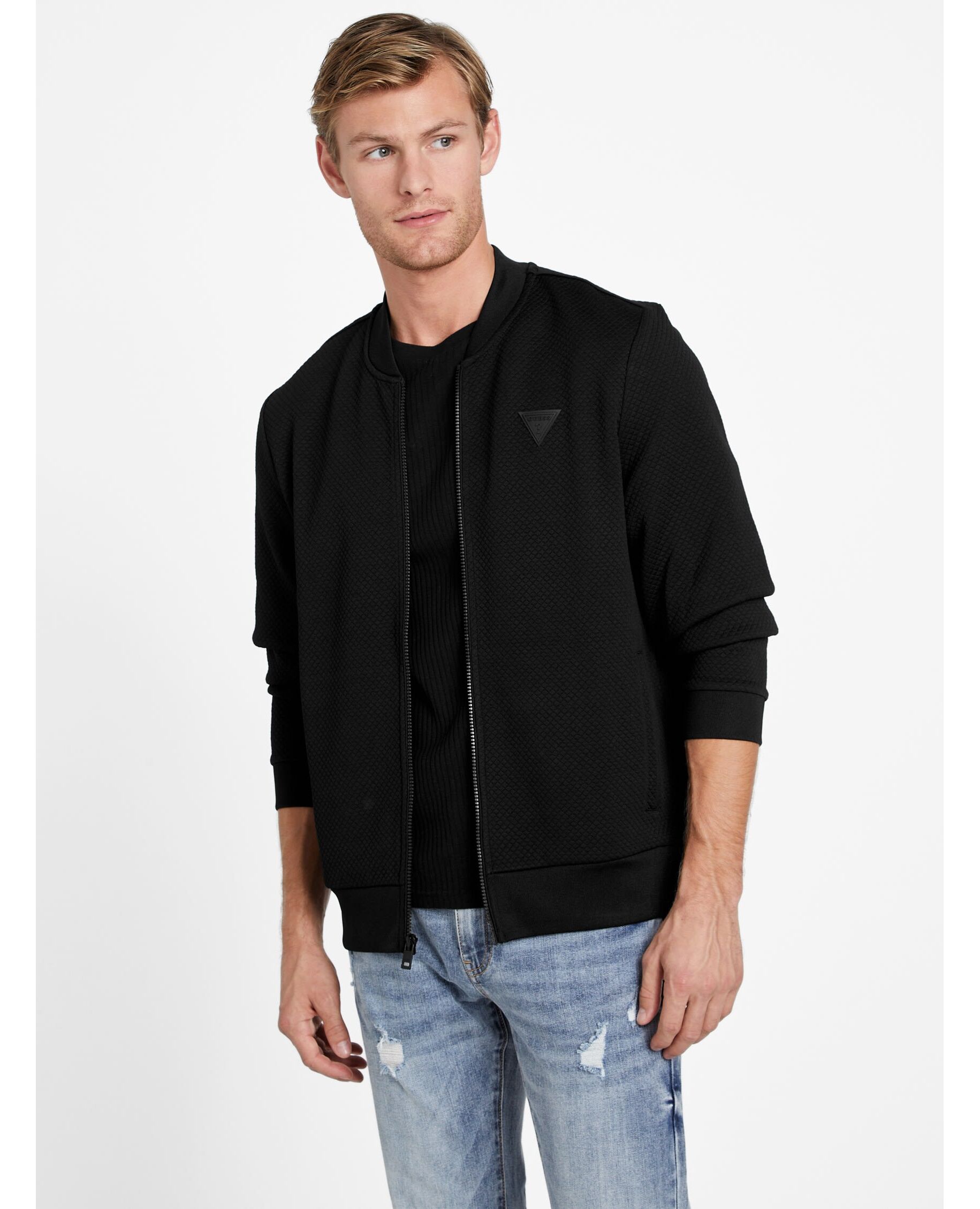 Explore new heights in this flight jacket. Designed with a quilted fabrication, stand collar, dual side pockets, logo patch and ribbed trim.
