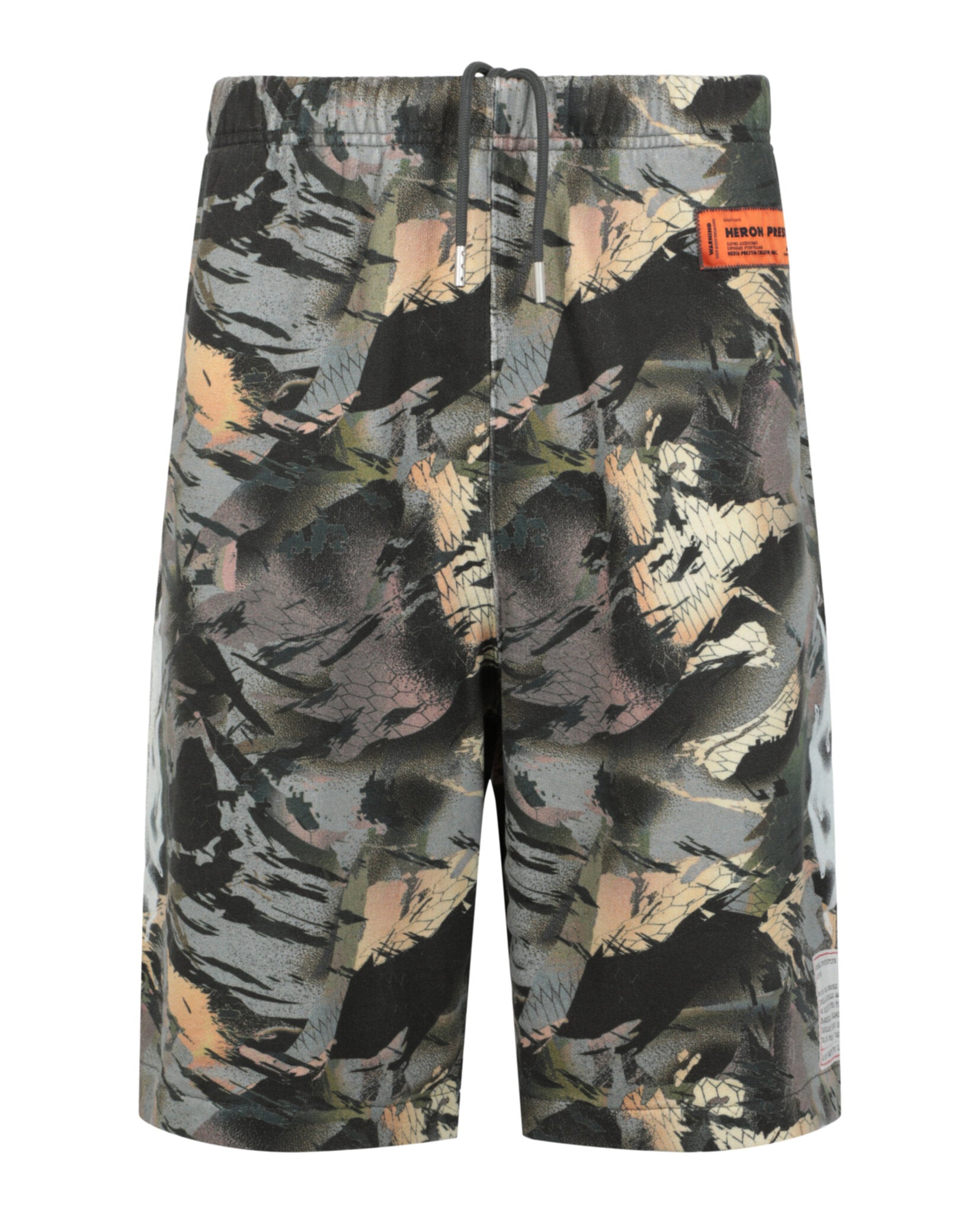 DETAILS Drawstring closure Mid rise Loose fit All over camouflage print; Flame graphic print at sides; Two slit pockets and one back snap-button pocket Machine wash 100% Cotton Imported