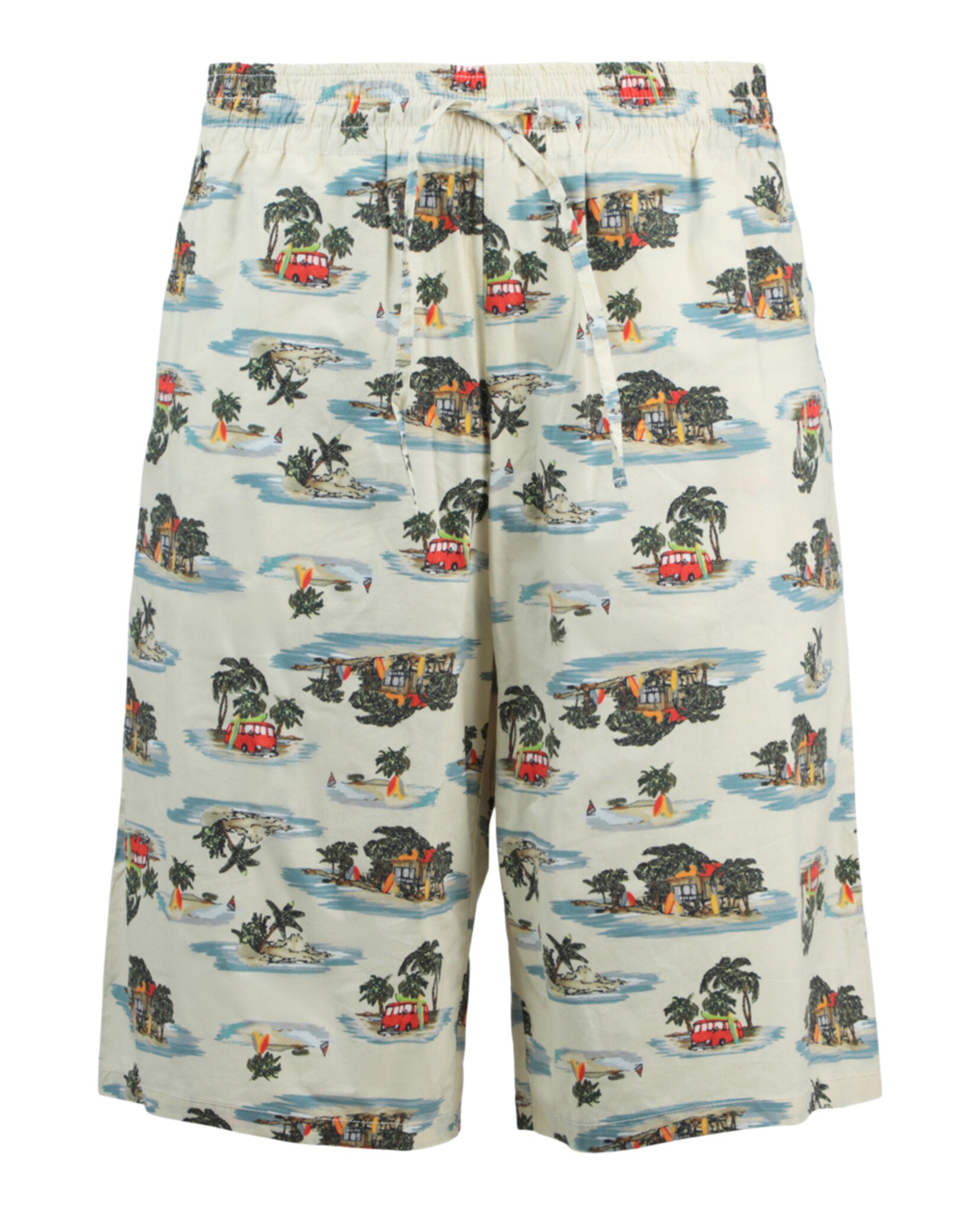 DETAILS Drawstring closure Mid rise Loose fit Allover Hawaiian print; Two front slash pockets and one back patch pocket Hand wash only 100% Cotton Made in Italy