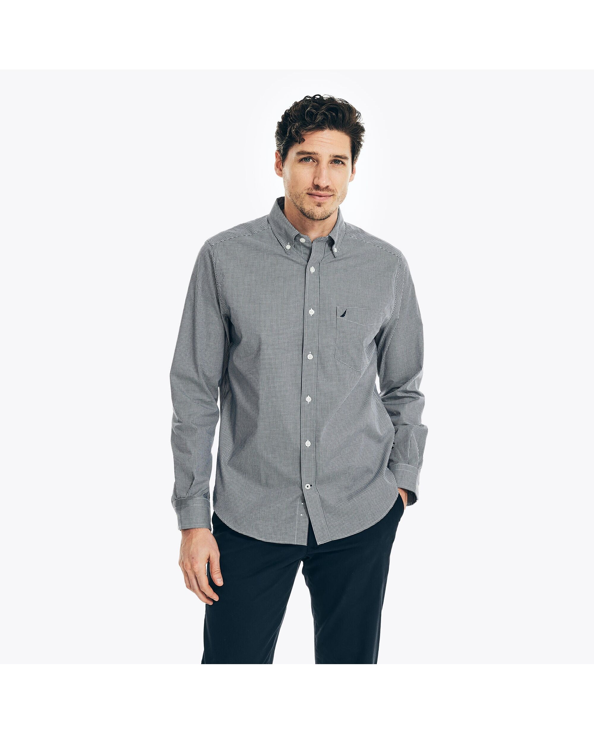 Nautica Mens Wrinkle-Resistant Plaid Wear To Work Shirt