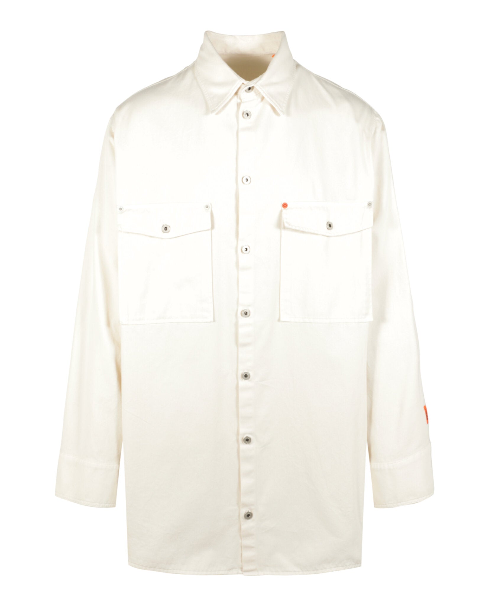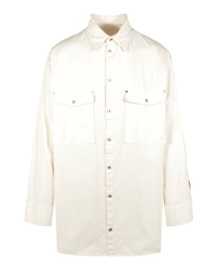 DETAILS Button up closure Collared neckline Classic collar Loose fit Two front flap pockets with button closure Machine wash 100% Cotton Made in Italy