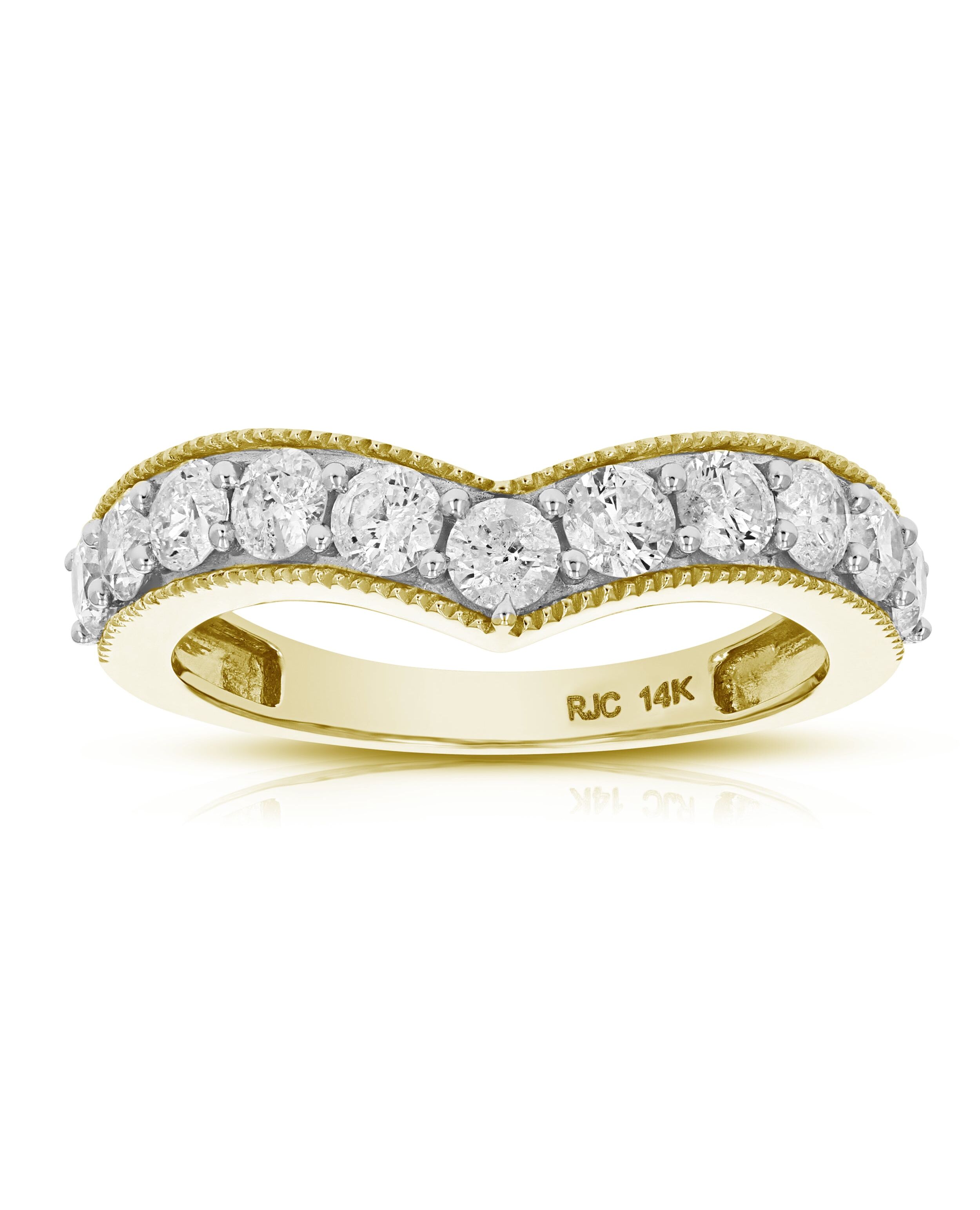 1/2 cttw Diamond Wedding Band for Women, V Shape Diamond Wedding Band in 14K Yellow Gold with Milgrain