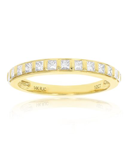 1/2 cttw Princess Cut Diamond Wedding Band 14K Yellow Gold 13 Stones Channel Set