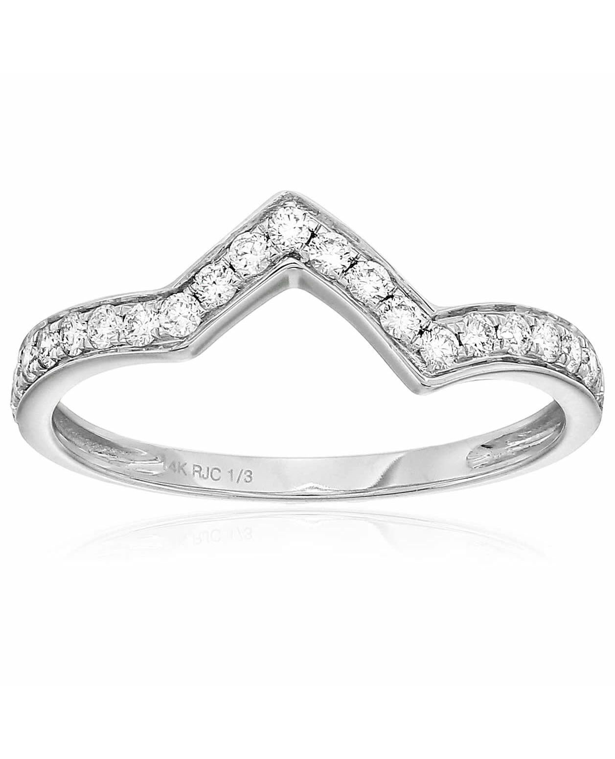 1/3 cttw Diamond Wedding Band for Women, Heartbeat Wave Style Wedding Band in 14K White Gold
