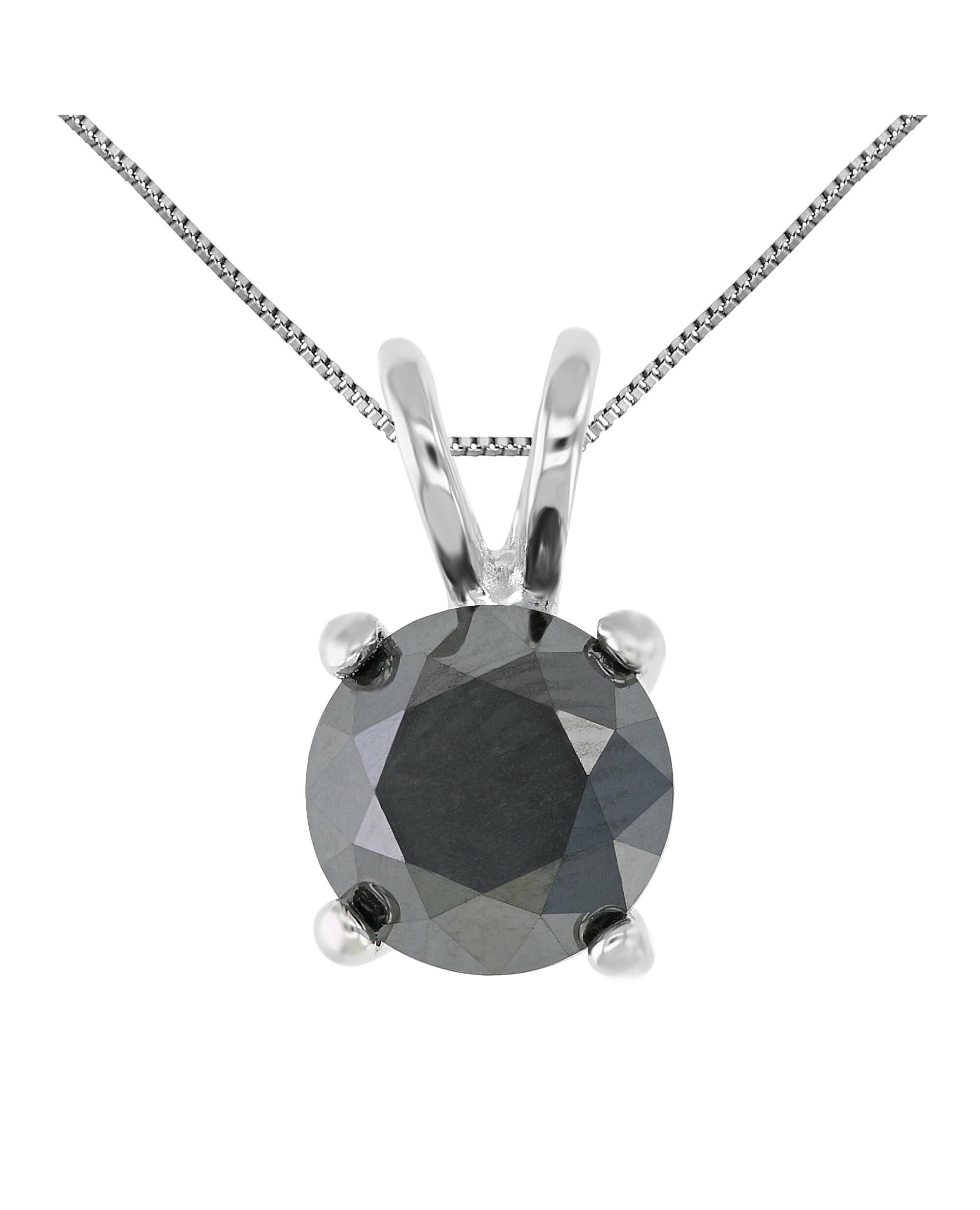 3 cttw Black Diamond Solitaire Pendant .925 Sterling Silver Round with Chain