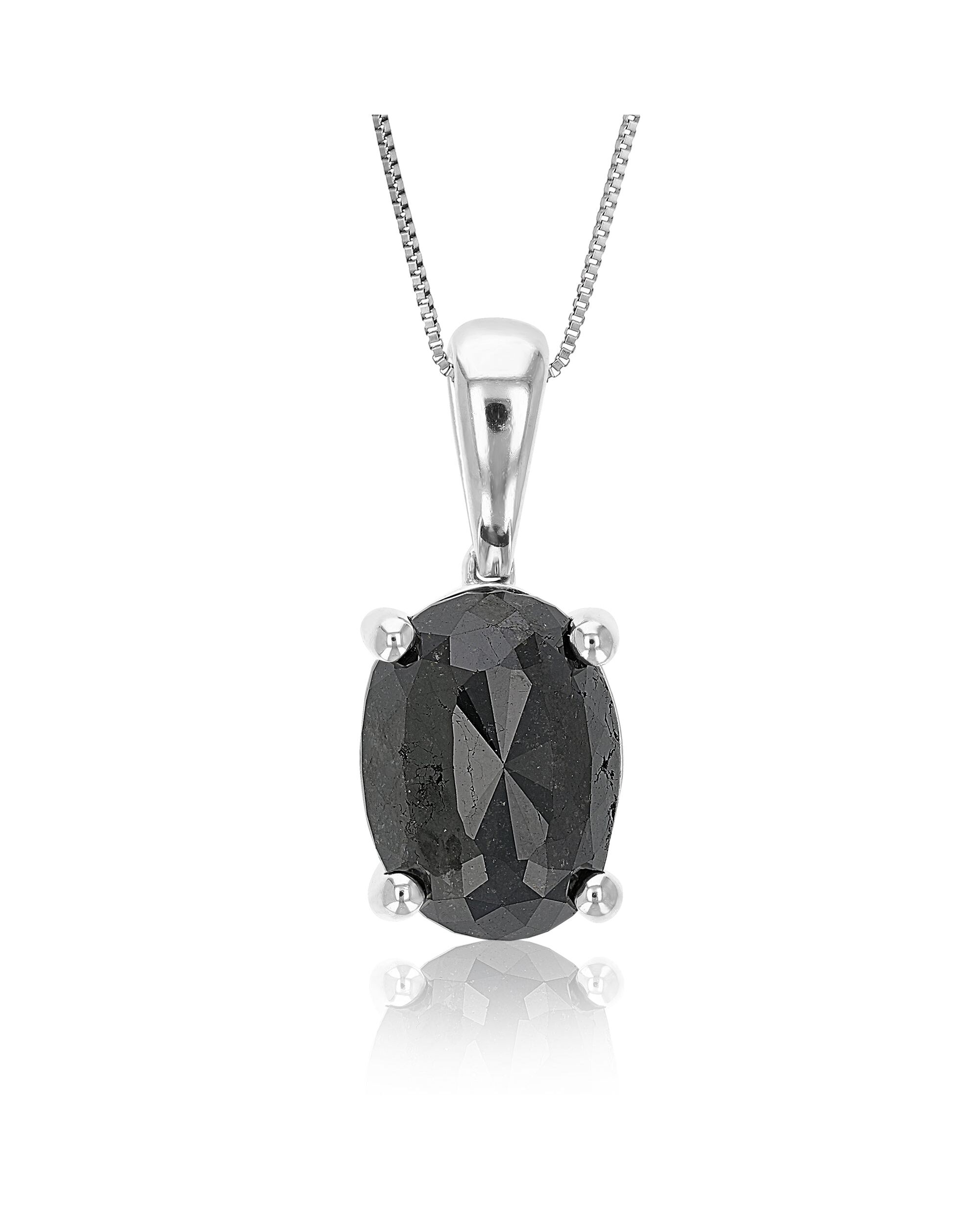 4 cttw Oval Shape Black Diamond Pendant Necklace Sterling Silver With Chain