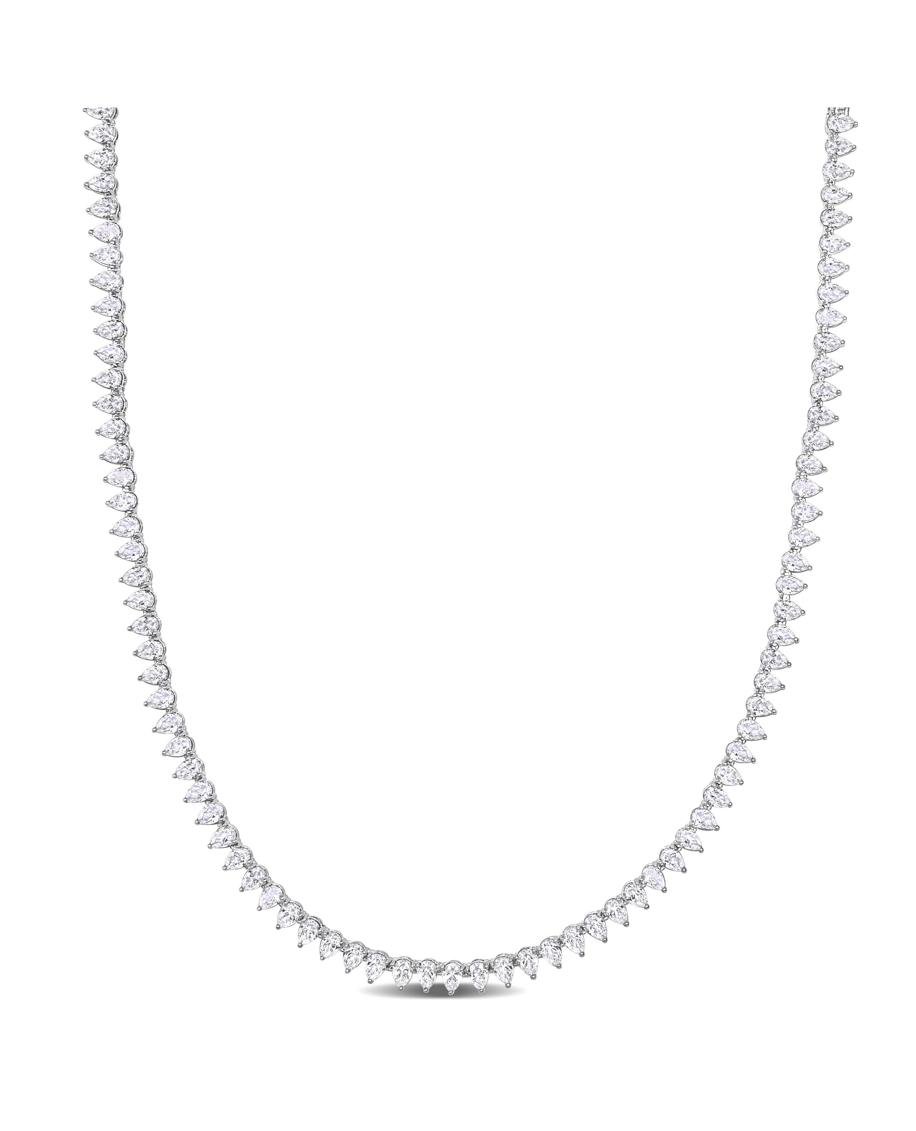44 1/2 CT TGW Created White Sapphire Teardrop Tennis Necklace in Sterling Silver